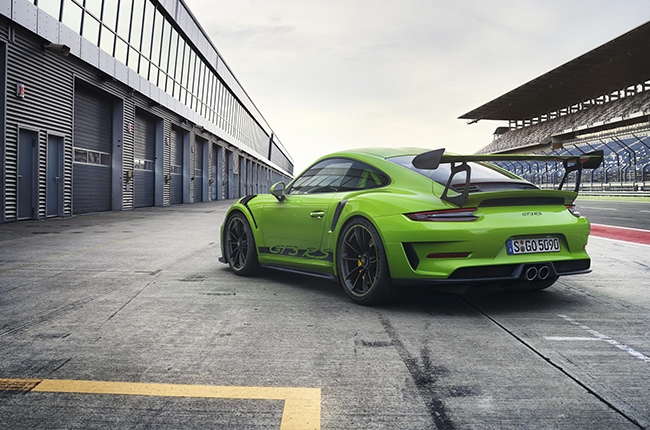The additional 20 hp compared to the 2016 GT3 RS is the product of a 4-liter naturally-aspirated flat-six engine with plasma-coated cylinder liners. Basically, there are larger bearings, larger connecting rod bearings, and a valve train with shims in this new engine. All these allow the intake of ram air into the openings in the rear quarter panels better than the older models. The result is a thunderous sound that comes out of the titanium exhaust tips.