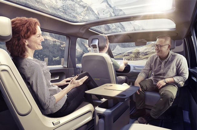 Meanwhile, the cabin features wooden flooring and an adaptive seat rail system, where seats can be unlatched and rotated facing rear. Mid-row seatbacks of the second row seats can also be folded to function as tables, while the third row could be transform into a bed. In the driver area, a touch-sensitive steering wheel, complete with augmented reality heads-up display, gives an impression of a sci-fi movie vehicle.