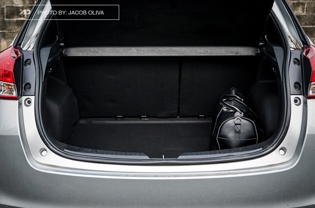 While space at the front is abundant, rear passengers would enjoy the same roomy feeling, too. But there isn’t much to play around with while in the back – no air vents, no cupholders (although there are huge bottle holders by the doors), no USB charging ports, and no foldable center armrest. Although, the rear seats fold in 60/40 fashion to reveal a huge amount of cargo area, which is the very thing that I like about hatchbacks over sedans.