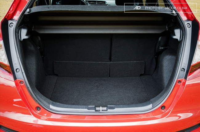 As for the trunk, it isn’t that deep, but what’s good with the Jazz is that it allows many ways to maximize cargo space. To do that, you can fold the backrests to flat or remove the trunk cover. You can also fold up the seat cushions to allow storage of tall objects at the second row. Lastly, the front passenger backrest can lean flat so tall objects, like a surf board, can fit the cabin.