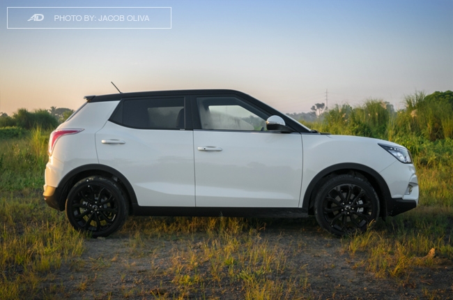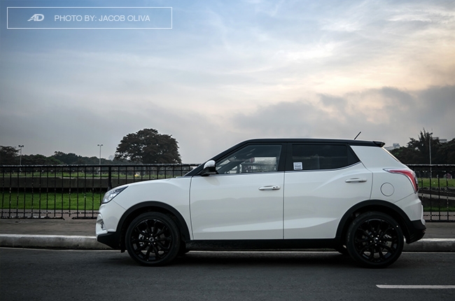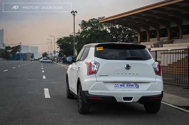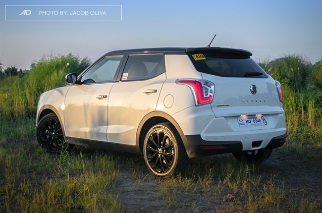 The LED daytime running lights up front is a great touch to the Tivoli’s styling, along with its bulging fender flares that give it a beefy aura. The sloping black roof also looks good, while the glossy black 18-inch rims complement the whole get-up. This reminds me of the British crossover with the same styling (Range Rover Evoque?) — but at a fraction of its price.