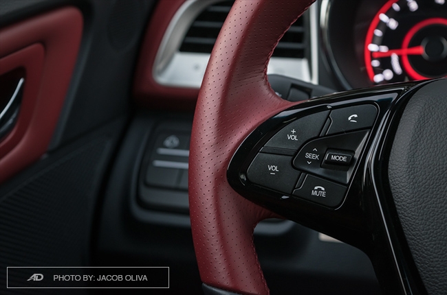 All the buttons and controls are tactile and within arm’s reach, while the control sticks behind the sporty D-shaped steering wheel houses the function for the automatic headlights and windshield wipers. Air conditioning is okay but without tint, it needs to work harder especially when left in a sunny parking lot.