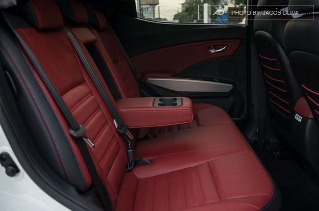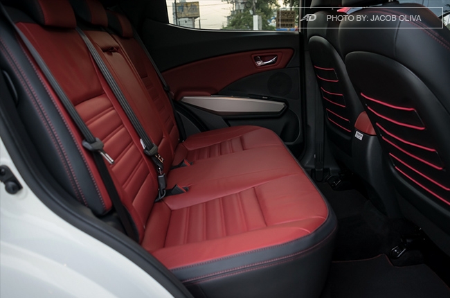 With its height adjuster, it’s easy to find a suitable driving position with the Tivoli Sport R. There’s also lumbar support for lower back issues. The leather bucket seats look good, although the leather isn’t that soft to the touch. At the back, the semi-bench seats are heaven-sent for 2 people, but a not-so-pleasant experience for the 3rd passenger in the middle. The red rope accent behind the front seats are up to your preference.