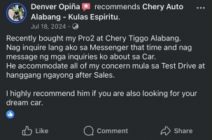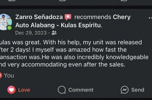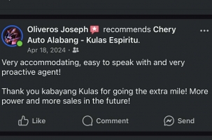 Cherry tigo 7 pro hybrid was worth for the money. The car was comfortable to drive and has a high driving power. Our agent Kulas, was highly trustworthy and recommended for his service.